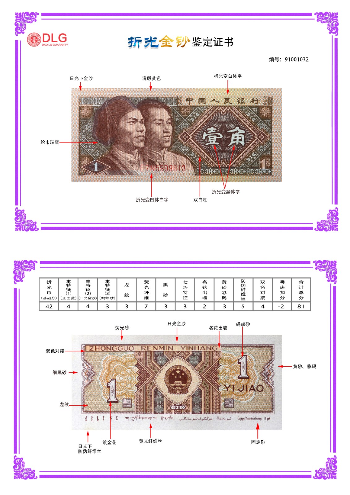 8001折光金钞评级币/编号1032