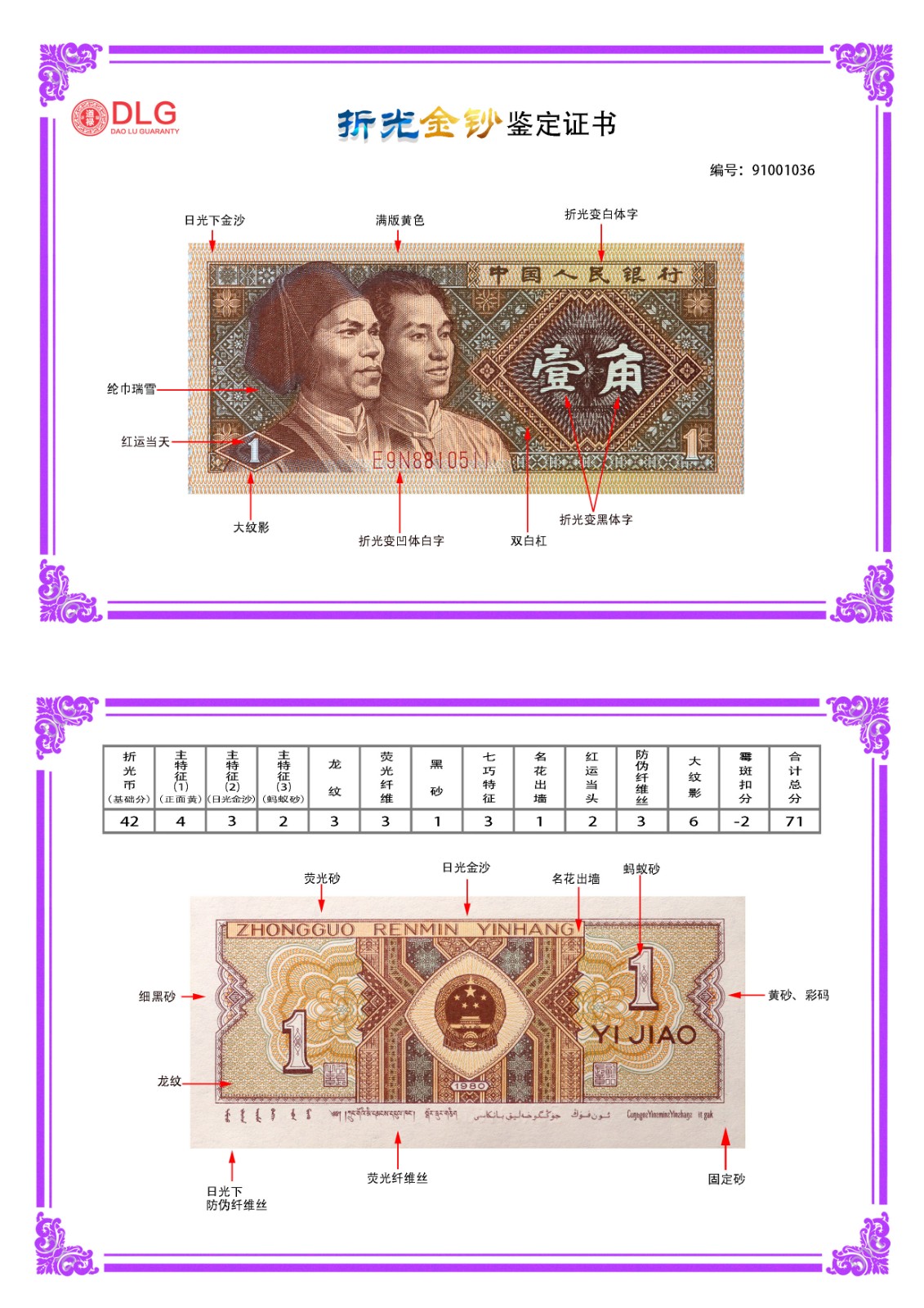8001折光金钞评级币/编号1036