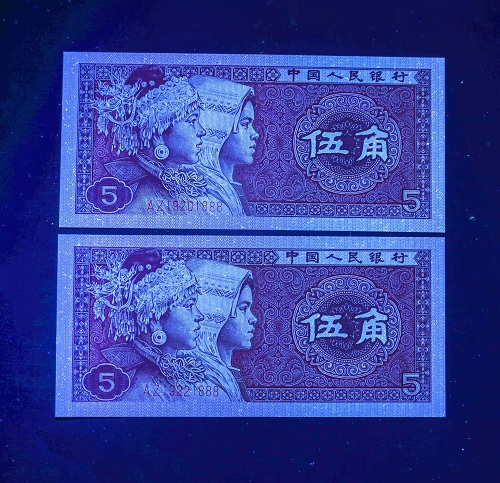 道禄贺岁龙钞评级壳与普通评级壳荧光对比