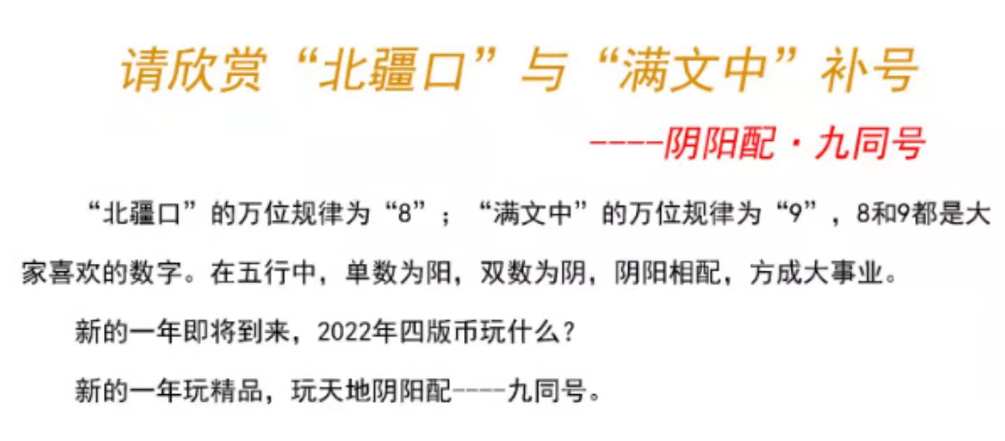 8001ZE主冠“北疆口与满文中”九同配补号