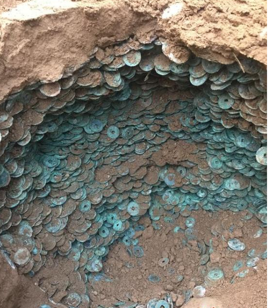 工地现10万枚古币 重920斤或是古钱窖