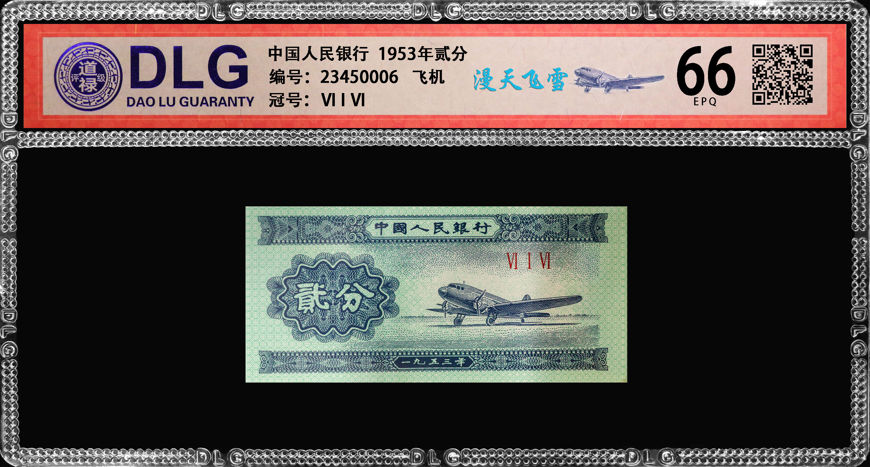 1953年贰分漫天飞雪评级币/编码0006