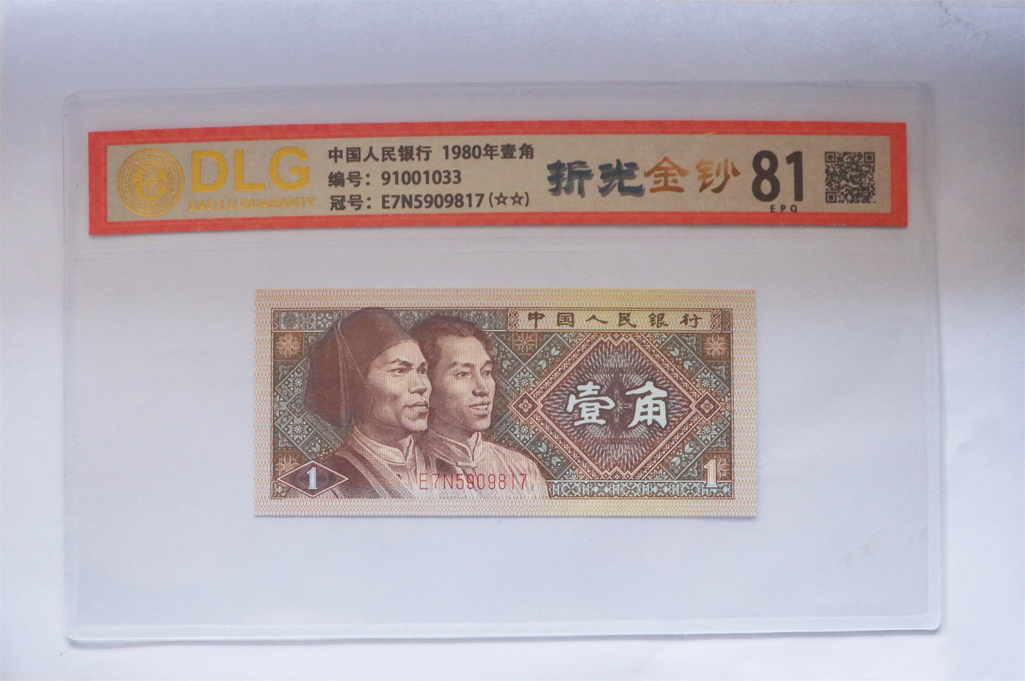 8001折光金钞评级币/编号1033