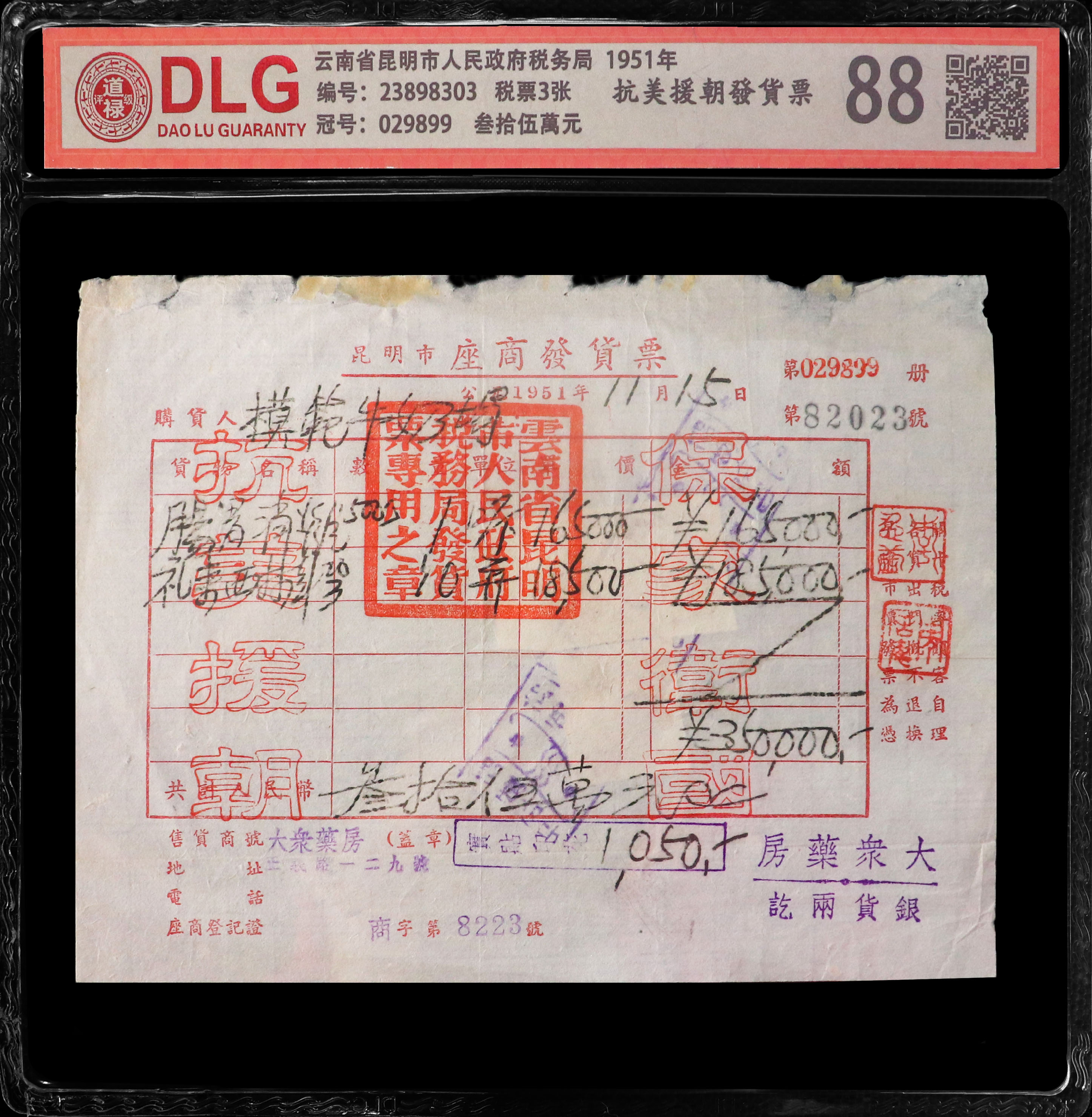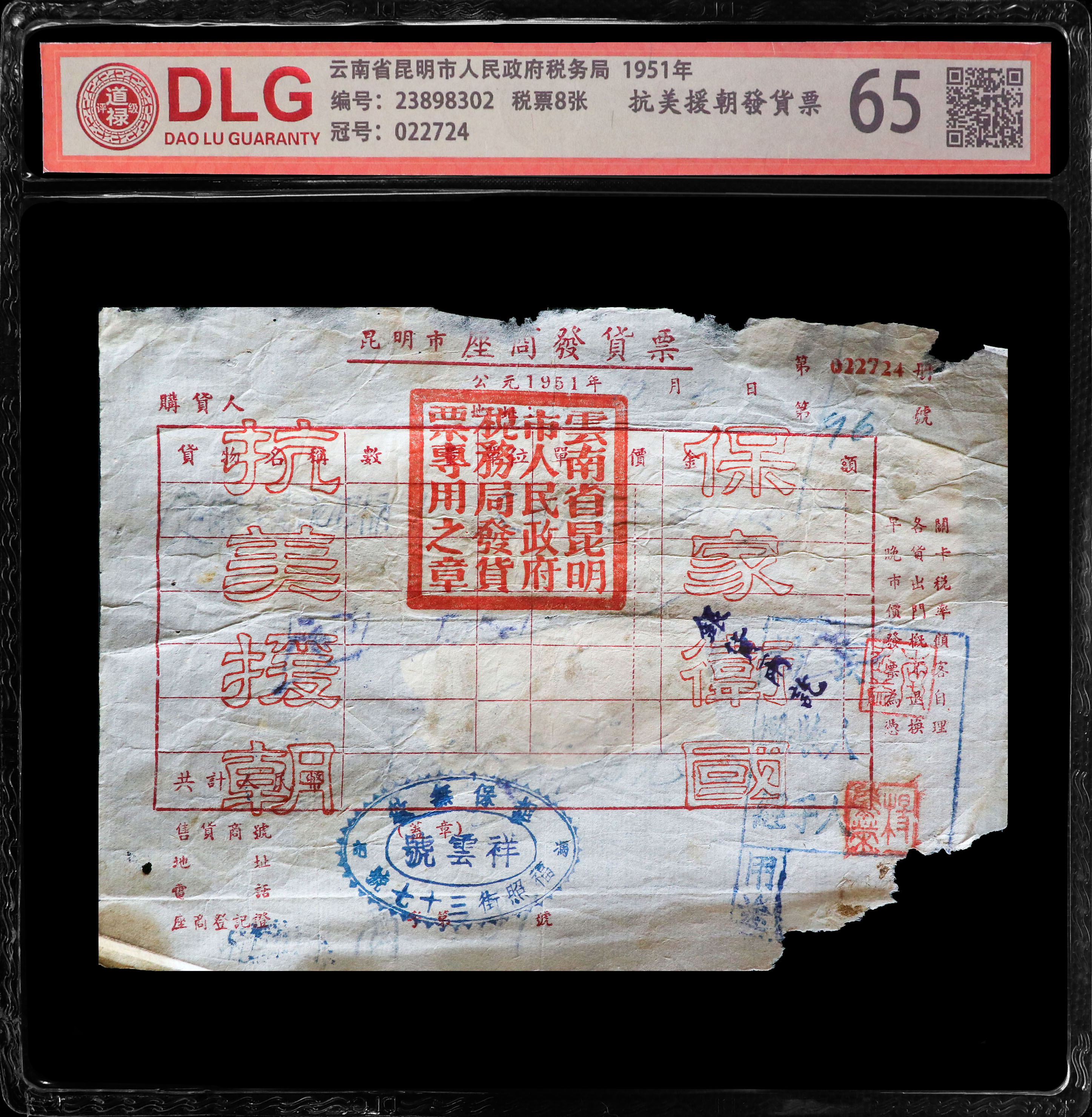 1951年抗美援朝发货票/编码8302