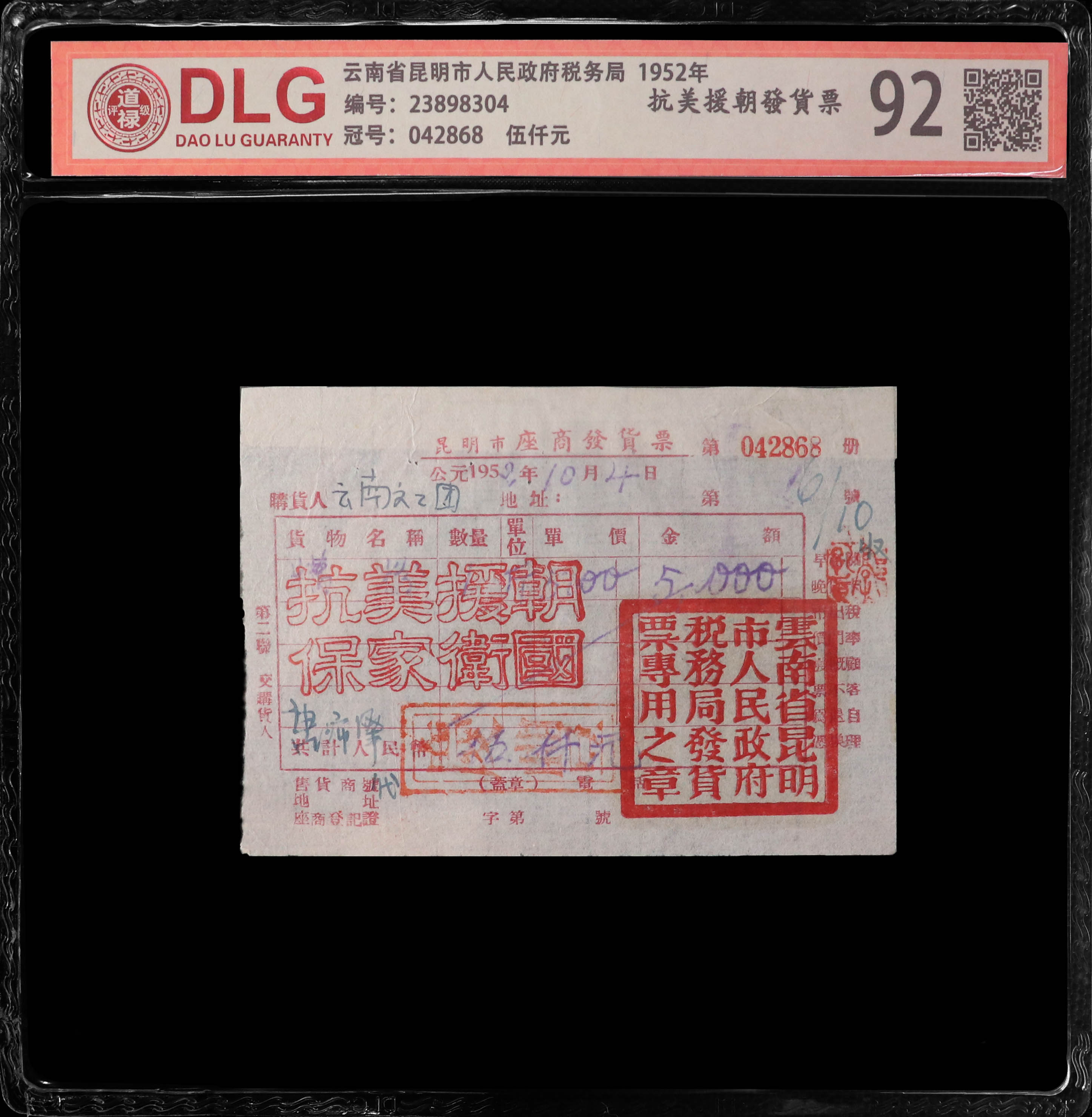 1952年抗美援朝发货票/编码8304