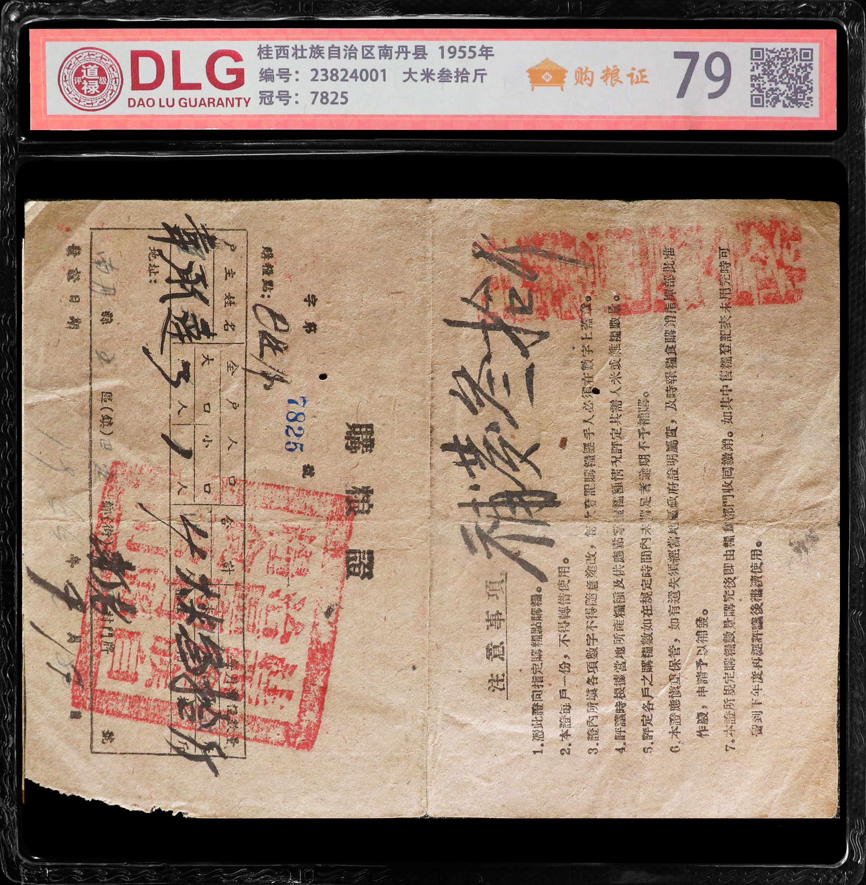 1955年购粮证评级币/编码4001