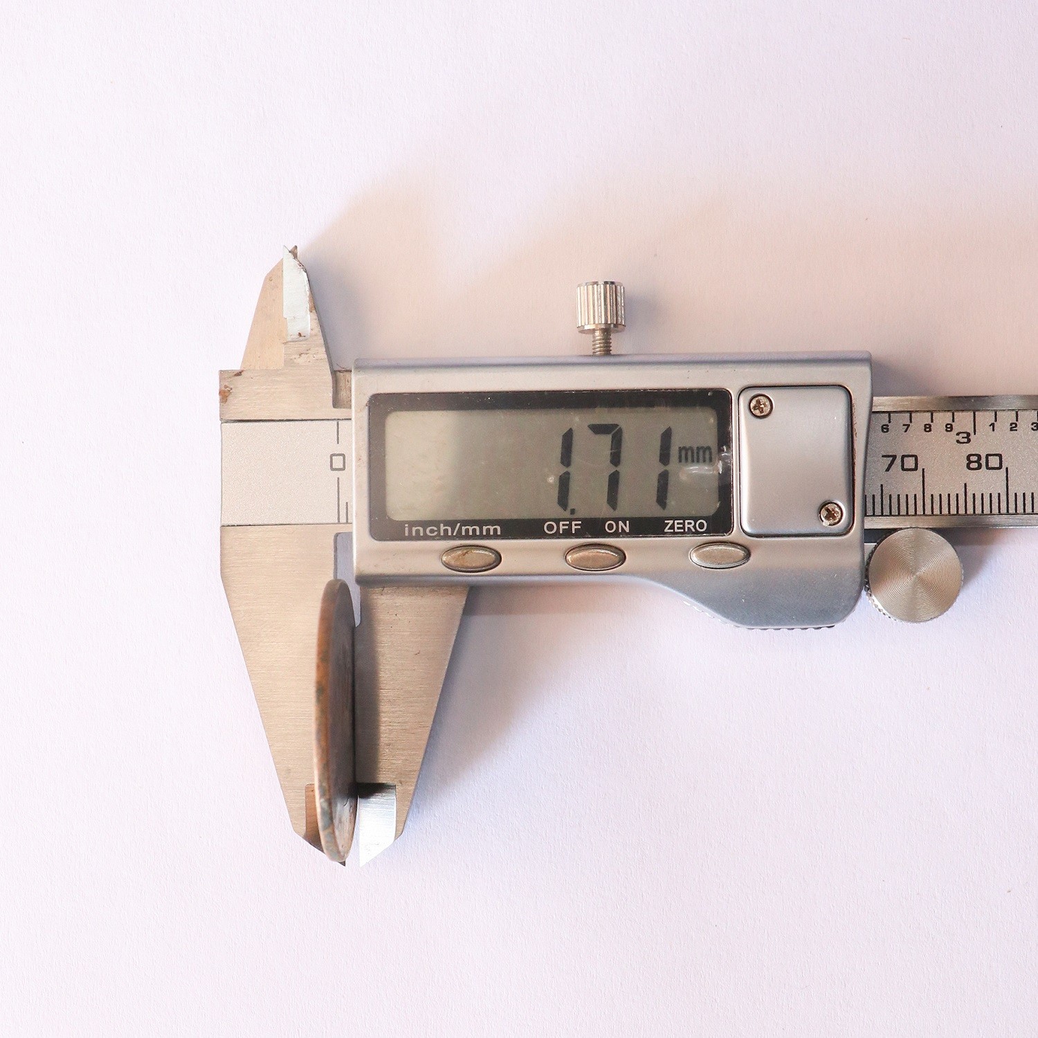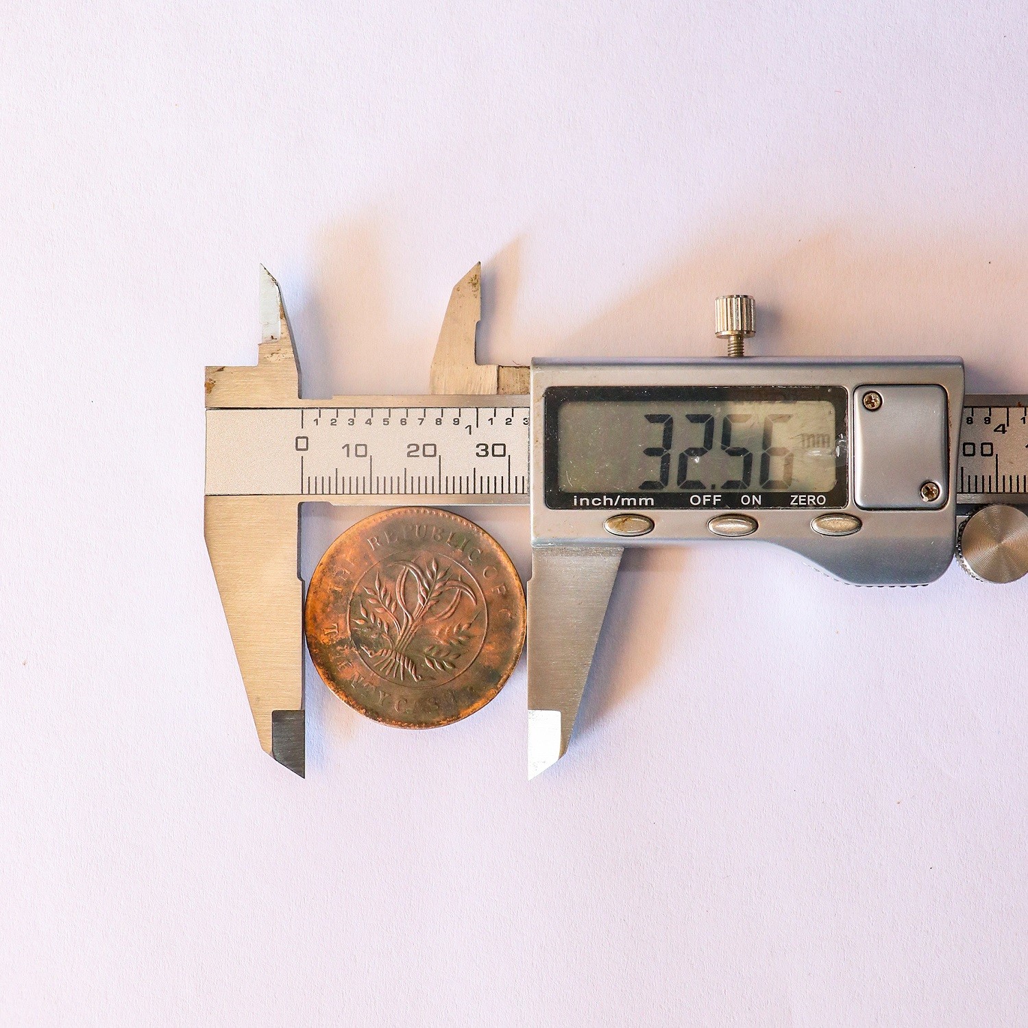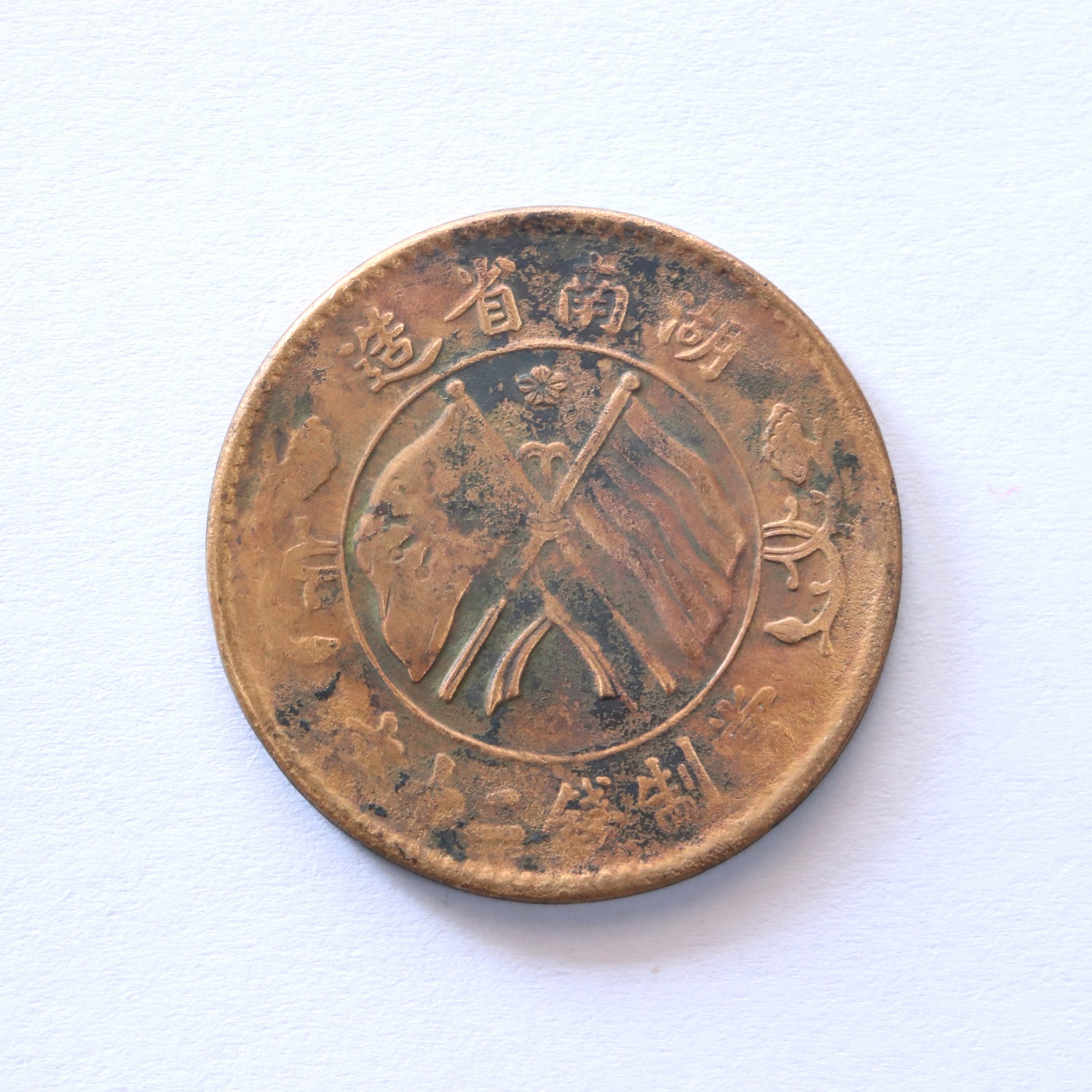 这一枚连体造,“造”字粗细有别,很有特征,背面小字小花,细径长芒,闭口九绕,红铜。规格:32.56*1.71mm