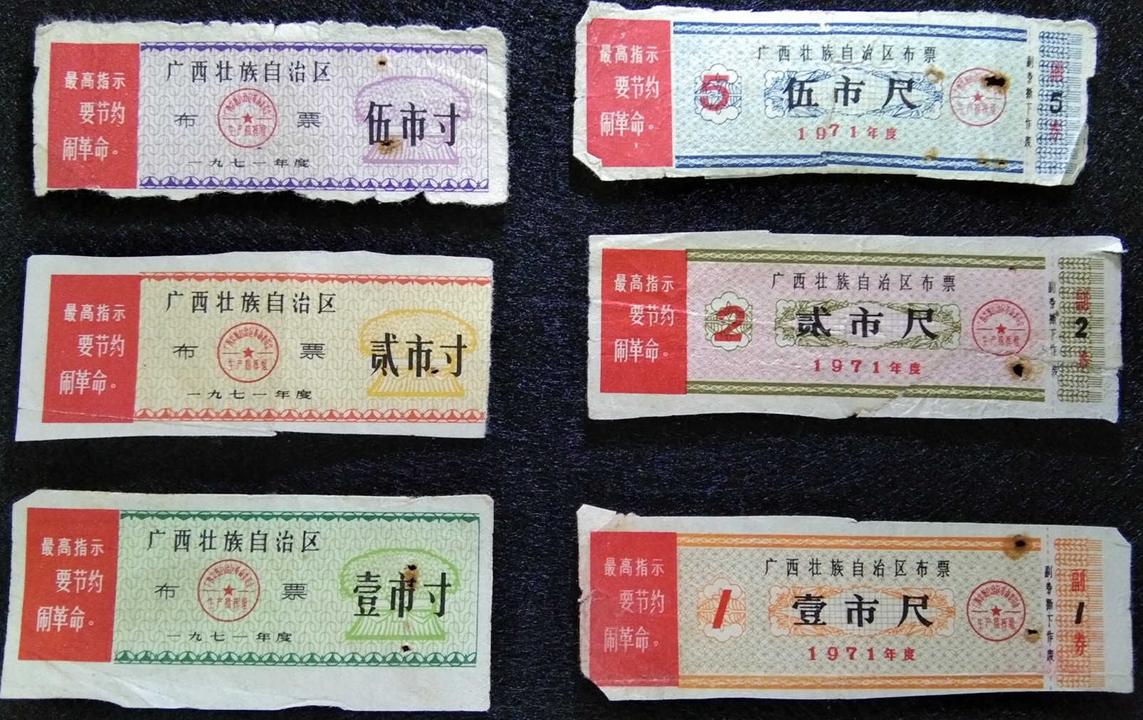 整套6枚 壹寸、贰寸、伍寸、壹尺、贰尺、伍尺