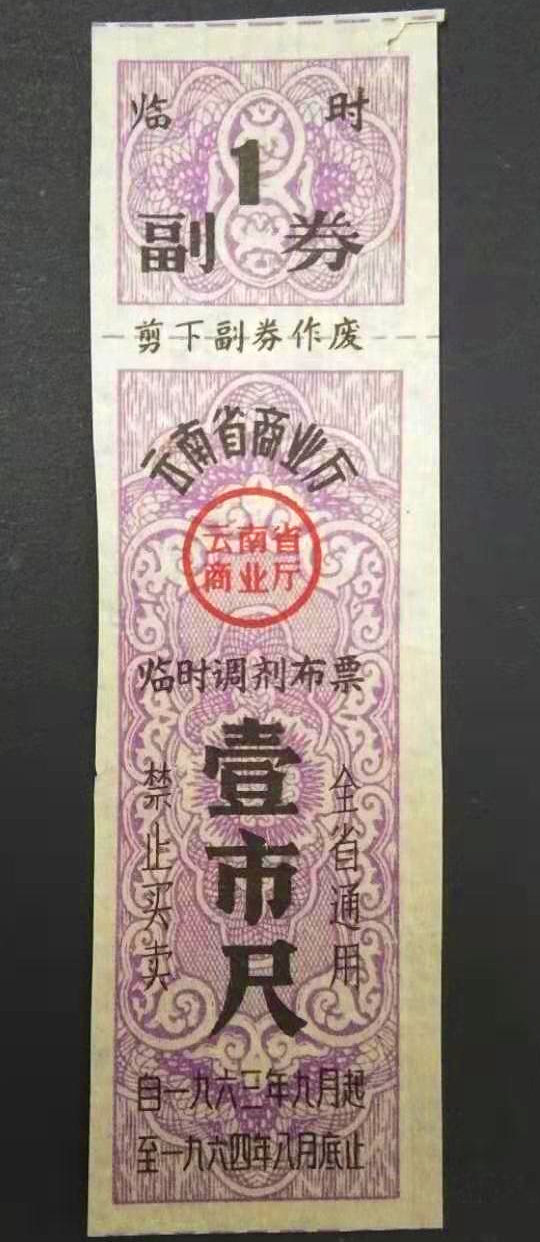 【1963年9-64年8月】云南临时调剂布票   壹尺
