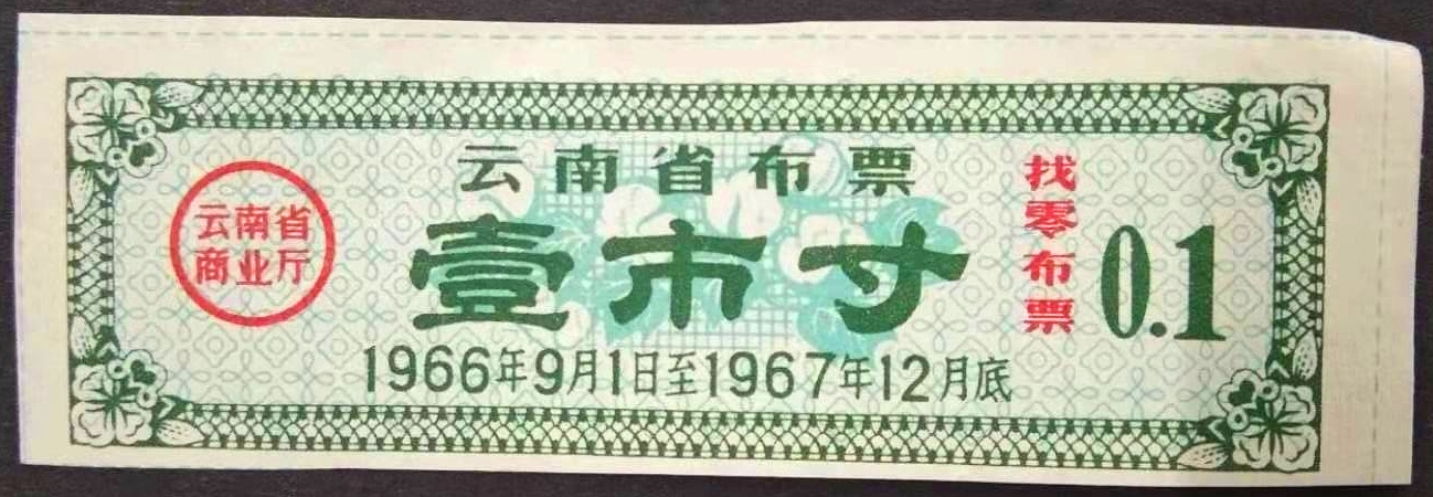 【1966年9-67年12底】云南找零布票  壹寸